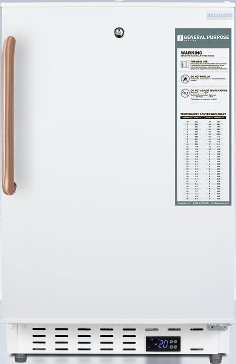 Slim-fitting ADA compliant undercounter freezer ideal for providing extra storage to small-spaced medical settings, with a pure copper handle for added protection from bacteria. Accucold offers a quality selection of 20" wide built-in undercounter all-freezers designed for installation under lower ADA compliant counters, with advanced features for the safe storage of select vaccines, pharmaceuticals, and other materials with strict storage conditions.Read More