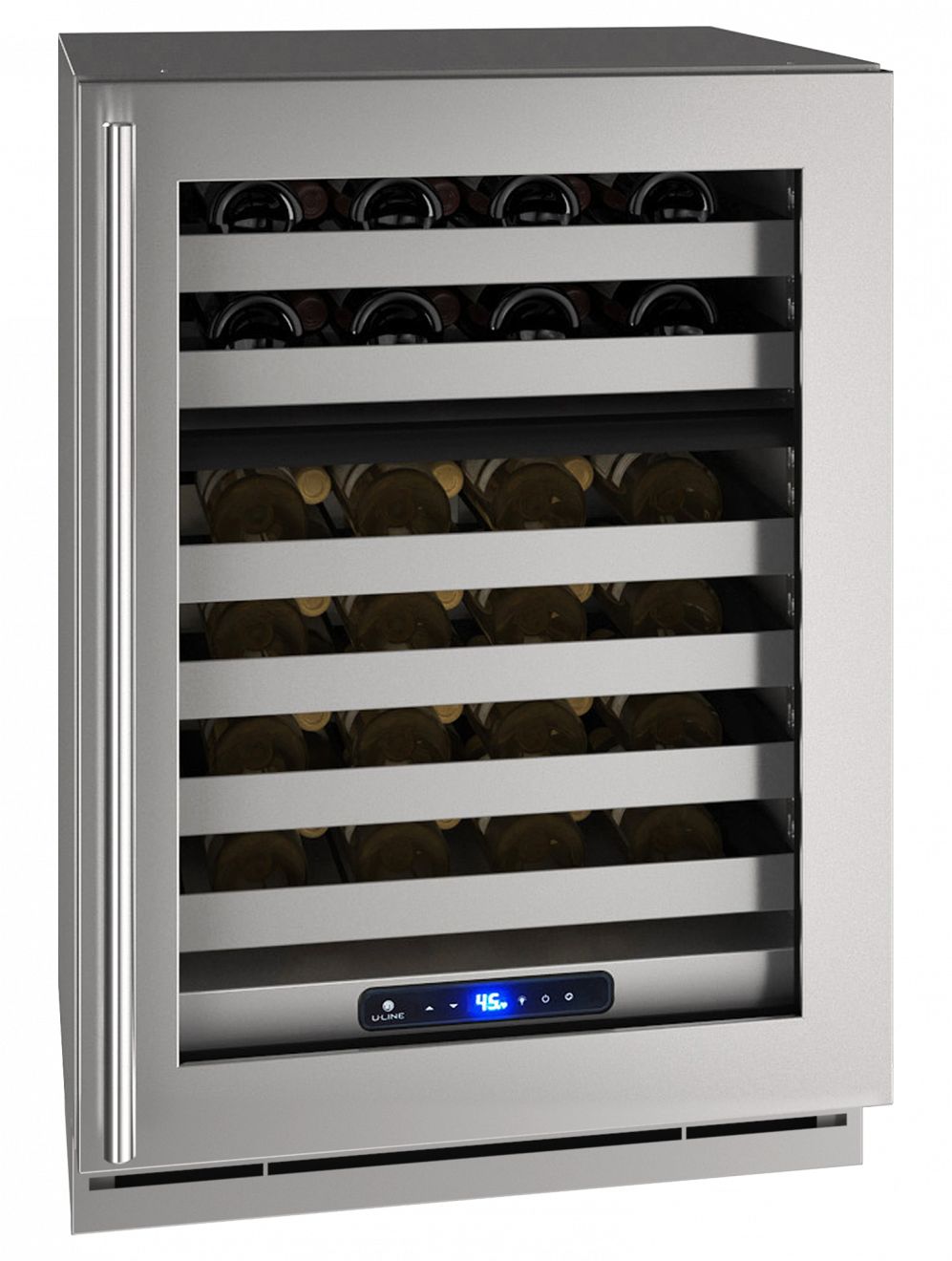 Store red and white wines in a single unit, at their optimal temperature with our 24" 5 Class Dual-Zone Wine Refrigerator is a wine lover's dream. This product features stainless steel inside and out, convection cooling for quick and consistent temperatures, and a state-of-the-art variable speed compressor. Robust and refined, U-Line's 5 Class Collection features an industry-exclusive full-depth lower interior allowing you to maximize storage space, adjustable blue and white LED lighting, and U-Adjust™ 17 position adjustment for full extension wine racks. This model can be built-in or used freestanding and is available with stainless steel or integrated door finishes that accept a custom door panel to match your surrounding cabinetry.Read More