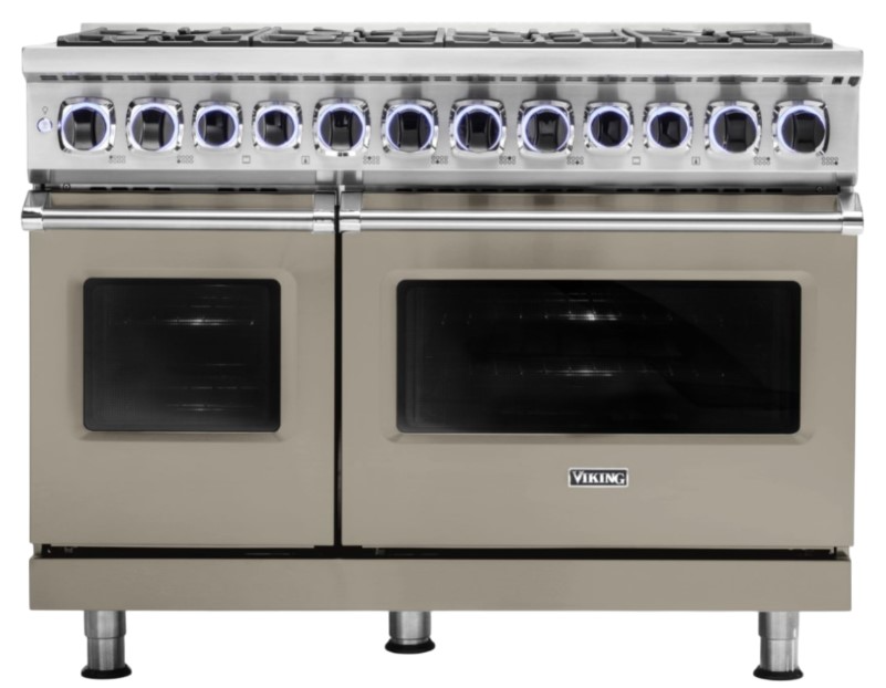 Viking® 48" dual fuel range with eight sealed burners offers powerful gas cooking and electric oven precision. Designed for high performance, it provides exceptional heat control, durability, and ample space for professional or home kitchens.Read More