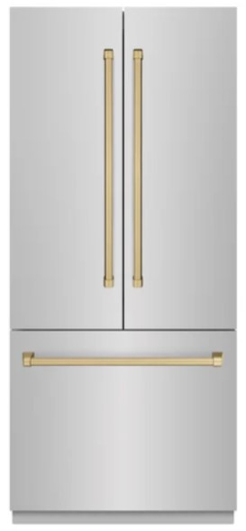 Luxury isn’t meant to be desired - it’s meant to be attainable. The ZLINE Autograph Edition 36 in. 19.6 cu. ft. French Door Built-In Bottom Freezer Refrigerator with Water Dispenser and Ice Maker in Stainless Steel with Graphite Gray Interior and Champagne Bronze Accents (GRBIVZ-304-36CB)Read More